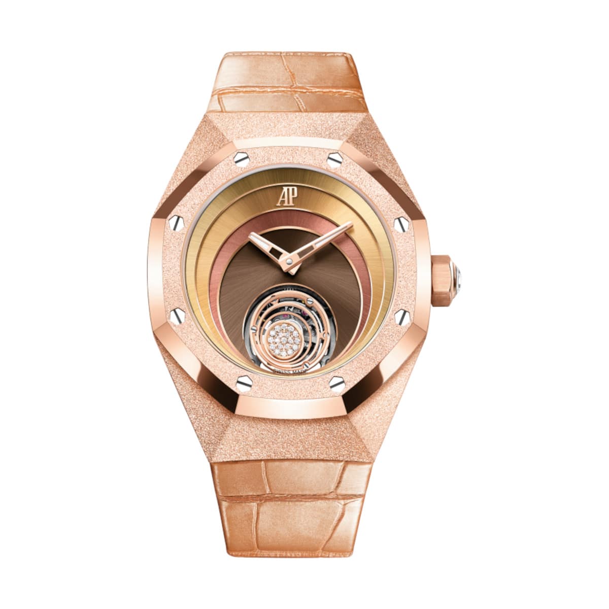 Audemars Piguet 26630OR.GG.D626CR.01 Royal Oak Concept Gold 38.5mm Dial Bronze-Toned Alligator Strap Watch Specifications: Brand: Audemars Piguet Model: Royal Oak Concept Reference Number: 26630OR.GG.D626CR.01 CASE Case Diameter: 38.5 mm Case Material: 18-carat pink gold Water resistance: 20 m…
