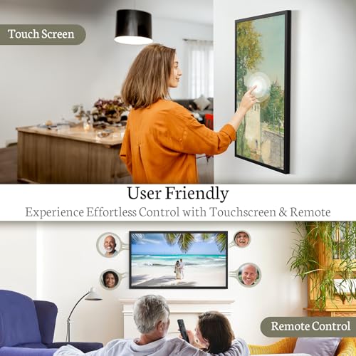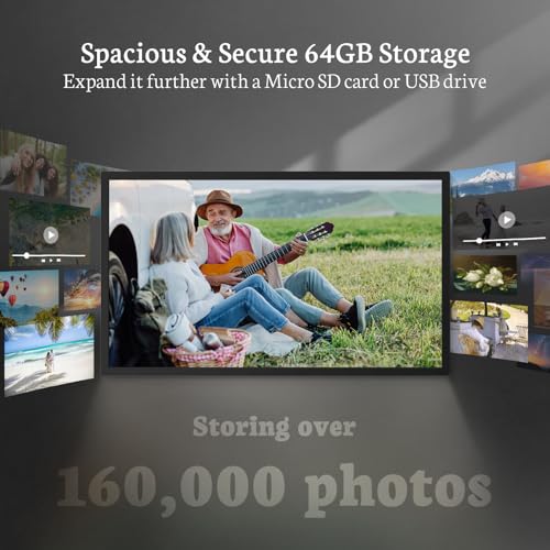 • 32 Inch FHD Touchscreen and 64GB Memory: BSIMB digital picture frame featured with 32 Inch 1920×1080 FHD IPS touchscreen and an aspect ratio of 16:9, digital frame displays stunning and clear images, which can revive the brushstrokes of the original painting. The digital picture frames built-in 64GB internal storage (holds 160,000+ pictures) with support for Micro SD Card (TF Card) and USB drive. This photo frame electronic also with a remote control making it perfect for older or less tech-savvy people to operate. NOTE:The battery type for this remote is AAA+, not included in the package.
