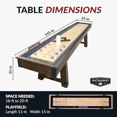 Hathaway Cheyenne 12 Ft Shuffleboard Table for Family Arcade Game Room - with Poly-Coated Playfield, Built-in Scorer & Cabinet, Climate Adjusters,...Hathaway Cheyenne 12 Ft Shuffleboard Table for Family Arcade Game Room – with Poly-Coated Playfield, Built-in Scorer & Cabinet, Climate Adjusters,…