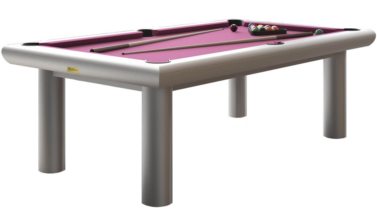+ Free GiftThe Jazz is a modern, elegant slate bed pool table with a rounded profile. It comes in three sizes with various finish options, and includes accessories.