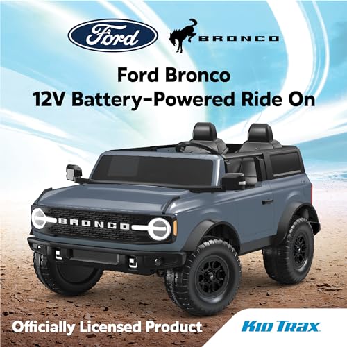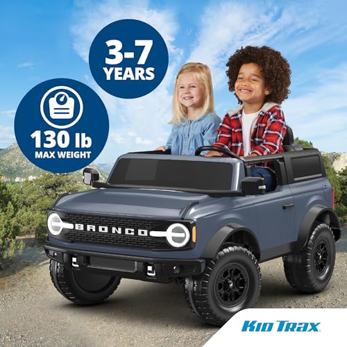 Kid Trax 12V Ford Bronco Ride-On Toy for Ages 3-7, Battery Powered, LED Headlights, FM Radio, MP3, Horn, 2-Seater, Max Weight 130 lb, 2 Speeds,...Kid Trax 12V Ford Bronco Ride-On Toy for Ages 3-7, Battery Powered, LED Headlights, FM Radio, MP3, Horn, 2-Seater, Max Weight 130 lb, 2 Speeds,…