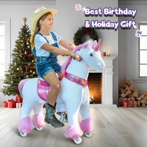 PonyCycle Large Unicorn Ride on Horse Toys for Girls (with Brake/ 42.5″ Height/Size 5 for Age 7-12) Ride on Toys Riding Unicorn Pony Rider Walking…